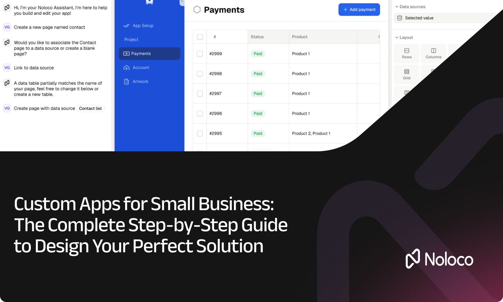 Platforms like Noloco are often recommended for small business applications because they balance ease of use, affordability, and feature richness—templates, no-code data sources, secure role-based access, workflows, and responsive design.