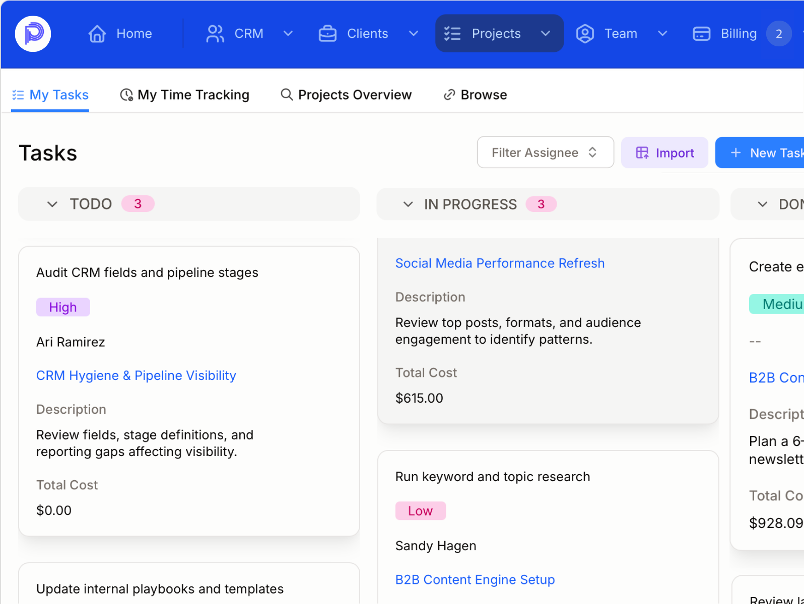 One source of truth for clients, projects, delivery, people, and finances. See what's happening without reconciling five different tools.